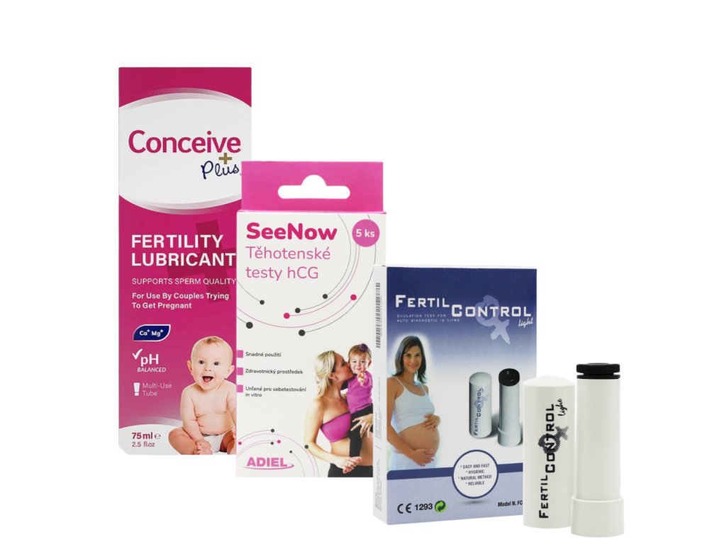 Súprava obsahuje ovulačný mikroskop DONNA na zistenie plodných dní zo slín, jednorazové tehotenské testy s vysokou citlivosťou (10 mIU/ml) a Conceive plus lubrikačný gél so špecifickým zložením na podporu počatia.