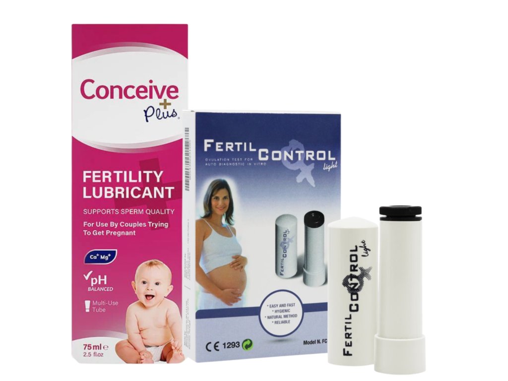 Balíček obsahuje všetky produkty pre potreby tých, ktorí sa pokúšajú o bábätko. Súčasťou je Donna ovulačný test, ktorý funguje na báze mikroskopu. Pomôže vám pomocou slín zistiť, či ste v plodnom období svojho menštruačného cyklu. Ovulačné obdobie u ženy trvá asi 3 dni, 6 dní sa považuje za obdobie možného otehotnenia. Až si overíte, kedy nastáva ovulácia, prichádza na rad lubrikačný gél na podporu počatia Conceive Plus. Ten je vyrobený patentovanou metódou tak, aby vytváral špecifické pH prostredie pre optimálne podmienky potrebné na prežívanie a migráciu spermií. Spermie v spojení s Conceive Plus preukazujú významne zlepšenú životaschopnosť v porovnaní so spermiami pohybujúcimi sa v prostredí ostatných lubrikačných gélov aj v prostredí bez použitia lubrikačných gélov.