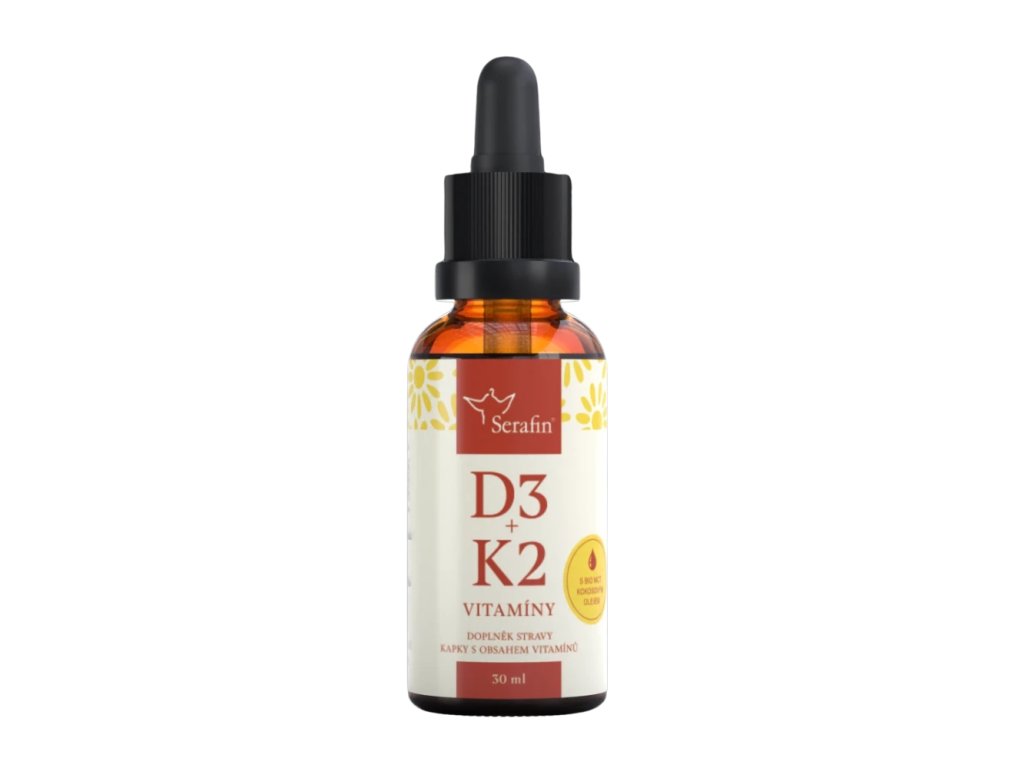 Vitamíny D3 a K2 v kvapkách značky Serafin tvoria ideálnu kombináciu na podporu zdravých kostí, zubov, imunity a kardiovaskulárneho systému. Prirodzené zloženie bez zbytočných aditív zaisťuje vysokú vstrebateľnosť a bezpečné dlhodobé užívanie – najmä u žien plánujúcich tehotenstvo, v tehotenstve a počas dojčenia.
